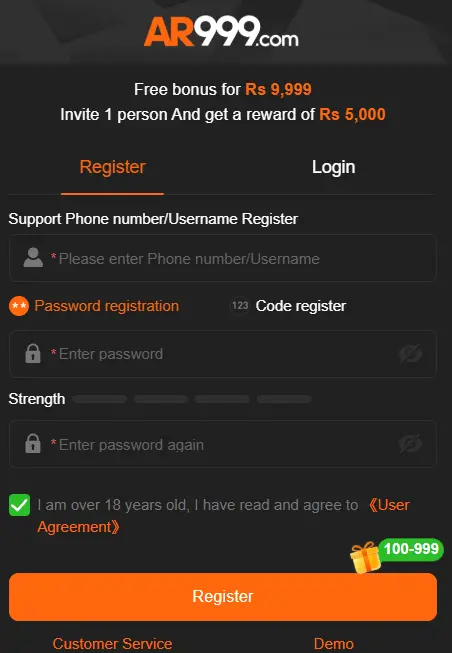 Creating an account on the AR999 game is very easy. Follow the steps below: