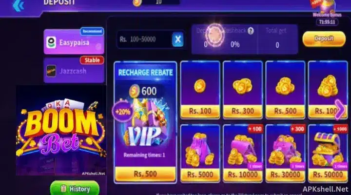 Boom Bet Game supports secure withdrawals via JazzCash and Easypaisa. Users can access their earnings quickly without delays, making it convenient for players to enjoy real cash rewards immediately after winning.