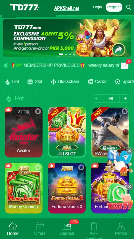 TD7779 is a real cash App in Pakistan designed for Android users. It features a variety of games from card classics like Teen Patti and Andar Bahar to modern slots and lucky spins where you can win real rupees.